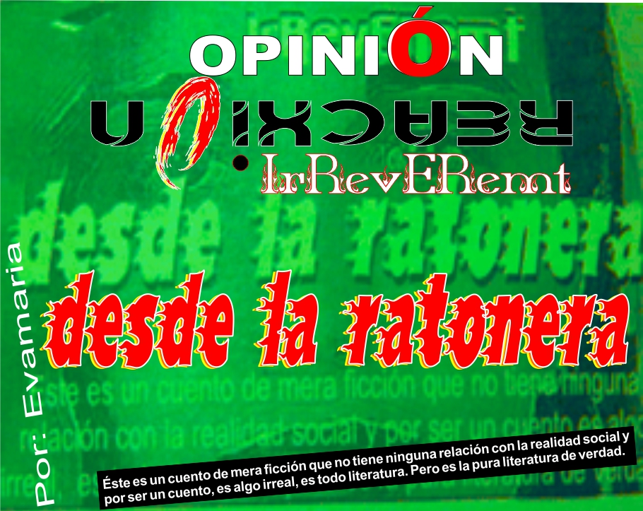 Vuelve evamaría con su columna de amor, digo humor negro, blanco, amarillo, rojo… en fin la literatura para la tomadera de pelo y la mamadera de gallo, no se vayan a ocultar las ratas de la paz y la mayor rata que volvió a repetir, la verdadera RANPaz será muy visitada por evamaria, traeremos a colación una sección de la fiscalía que queda alpie del palacio de cristal, dizque éste fiscal repartiendo regalos y entregando obsequios con la madam camaleónica, que tiene a los empleados de los abuelos fritando con agua, …y muuuuuchos muchos …chismes más….